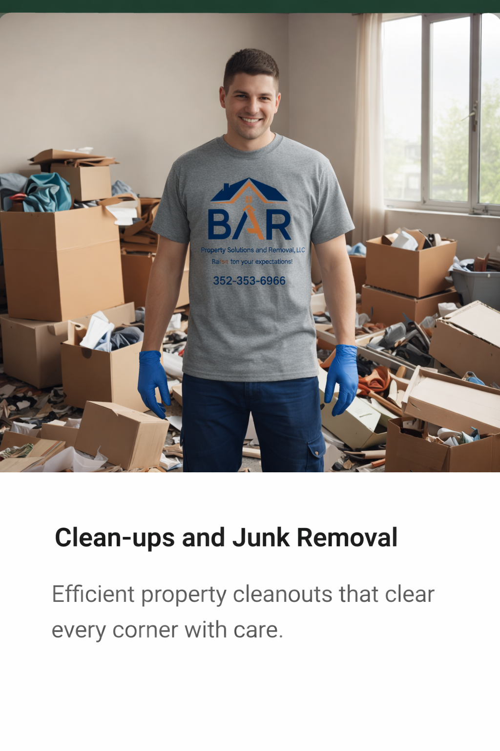 BAR Property Solutions and Removal handles cleanouts, junk removal, and many other services. Keep your property how you want it!